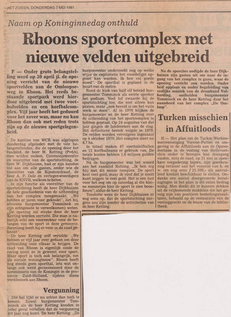 In 1981 werd het sportcomplex de Omloop uitgebreid met meerdere velden voor o.a. voetbal en korfbal.