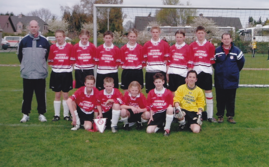 Een jeugdtoernooi weer uit de Eurosportring serie, waarvoor deze keer weer België was geselecteerd. Gelukkig is er het archief van de familie Oranje nog, ik heb er niets van terug kunnen vinden voorlopig. Degene die inschrijft is leidend v.w.b. zijn adres, dus zo zien we bij poule B dat v.v. Rhoon uit Poortugaal komt. Verder begrijp ik van het verloop van het toernooi ook niet veel, want ik zie in de voorronden dat Rhoon 2x gewonnen heeft en 1x gelijk en dat ze ook de plaatsingswedstrijd winnend hebben afgesloten. Hoe ze dan moeten strijden om plaats 5 en 6 begrijp ik niet, wel dat ze gewonnen hebben na 3-3 en strafschoppen. Wellicht dat anderen nog een bijdrage of uitleg kunnen leveren. Graag sturen aan webmaster@vvrhoon.nl