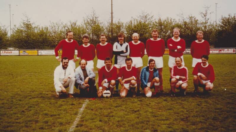 Een niet te herleiden foto maar gezien de aanwezigen er op zou het een reuniewedstrijd geweest kunnen zijn bij het 45-jarig jubileum of familiedag.
