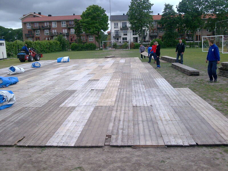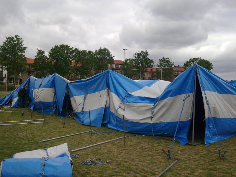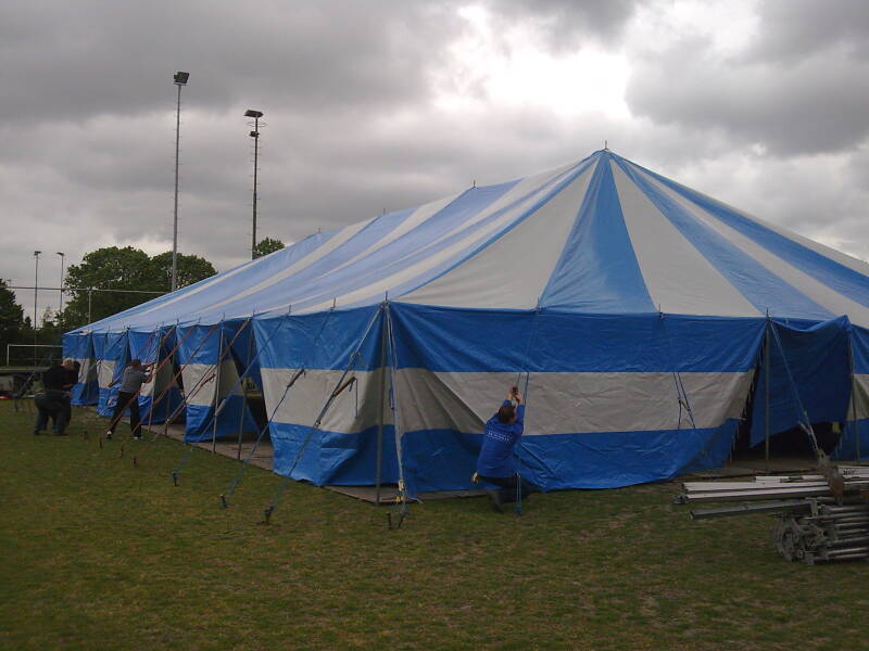 opbouwen feesttent door vrijwilligers v.v. Rhoon