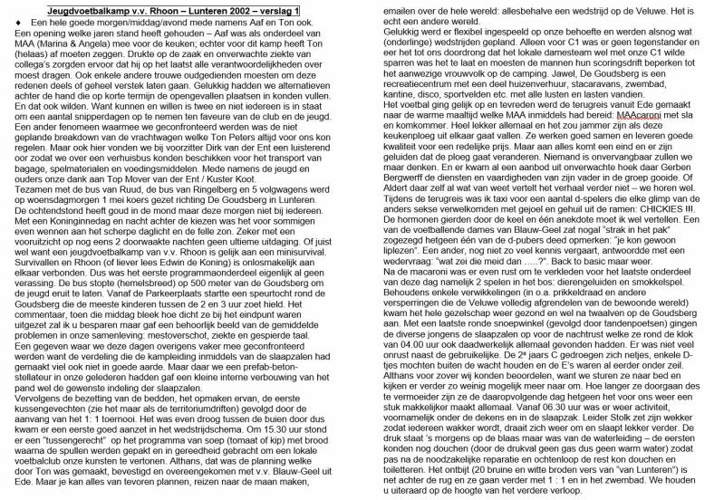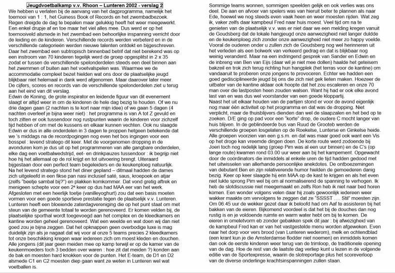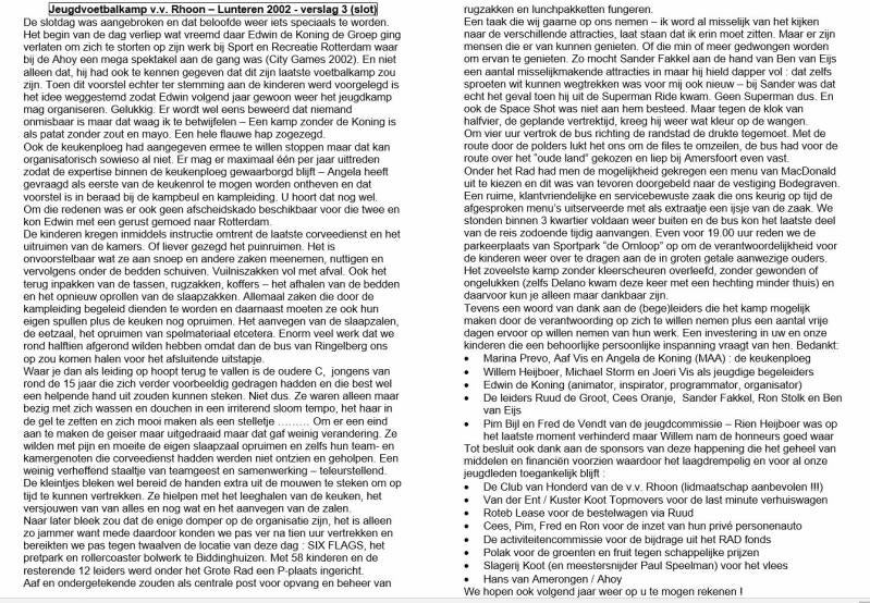 Ook hier weer de vraag om beeldmateriaal om het wat op te leuken - meer als het kampverslag niet in mijn archief: Bijdragen naar webmaster@vvrhoon.nl